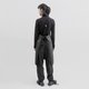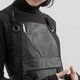 左右两条背带于背后交叉,穿过侧边圆环,调节长度,在后腰打结