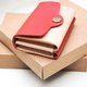 红白配的双层手制牛皮卡片包—把零钱发票塞进去,名片信用卡使用最便利!