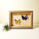 刺绣蝴蝶放在衬着木屑纸的小相框中,