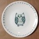 手绘的绿色猫头鹰站在盘中漾呆望着