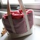 红色海军风的束口袋、便当袋、野餐袋