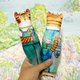 独特水彩画的动物钥匙链印在丝绸的两边。