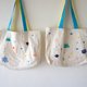 宇宙(蓝色织带是蓝天,黄色织带是太阳)、大容量(装着代表你的everything)、图案(大山、小山、星球)