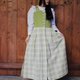 Description: F856(Vintage)绿色格纹雕花排扣棉质背心洋装(奥地利传统Dirndl)