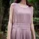 行进间 展现飘逸雪纺以及衬肤藕色的迷人风采