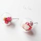- 春日红色系小雏菊干燥花水晶玻璃球耳环 可换夹式
