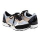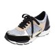 这双有抢眼白色厚鞋底的运动鞋,特色是有混合颜色的设计和亮面物料。