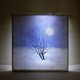 原画为水墨画,分两层,上是雪地,下是月夜,白天能看到雪地孤树,夜和月隐没在纸下,晚上在裡面放上小手电筒或者加上led灯就能看到月亮挂在树梢,深蓝的夜透著朦胧的冬夜神祕,别有一番冬日的意境。