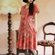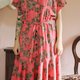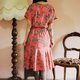 Description: F1165(Vintage)粉橘色附腰绑带玫瑰花波浪裙摆古着洋装(婚礼/野餐/派对)