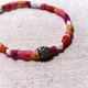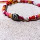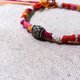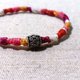 扣上的方式,是用蜡线套住圆盘款捷克珠。亮眼的珠珠让手环更有整体风格。