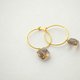 格纹型切割的 A 级天然石烟水晶环形耳环。