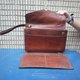 颜色为红咖,色偏酒红色,复古小方包,有个小提把,简单典雅的设计,