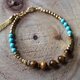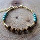 品名:自然风系列 NO.75黄色虎眼石土耳其石黄铜手链