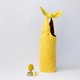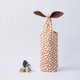 水瓶提袋的两条带子造型看起来像兔子耳朵,因此 称之为“兔耳袋”,适合一般直径7cm内的水瓶与瓶罐,内里设有铺棉可避免碰撞,简易保冷、温。夏季时让手中的宝特瓶或水瓶不再流下水珠而影响手感,可手提、也可绑在包包上,饮品携带更便利。
