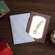 经典18K金自然系造型书签设计,包装背卡可拿来当卡片书写。