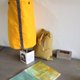 内含黄色圆筒包一个、大笔记本一本,和一个束口袋。