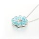 - [Alice] 凭借观察莲籽在莲蓬里的模样,以抽象手法地刻划出苤与籽的关系。设计简约而精致., 由稀有的湖水色蓝玉髓镶嵌而成。同款亦有其他颜色配搭供选择。