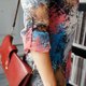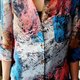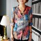 这个花色穿起来好chic! 有点不规则的涂鸦风格 颜色搭配的刚刚好 随意搭个黑色长裤或短裤就很有型呢~ 立领开扣衬衫 长袖设计 袖子上有扣子与带子设计 所以可以卷起来穿 稍有腰身修饰身型 长度不会太长 扎进去穿或放出来穿都好看~ 无内里 须内搭 雪纺材质 肩宽 37cm 胸宽43cm 腰宽39cm 全长69cm model 159cm 46kg 产地/制造方式 产地台湾 手工制作