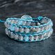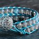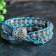【材质】灰玛瑙、蓝玉髓、进口希腊真皮牛皮绳、编织线、合金组件、进口手链扣