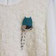 Cat lady brooch. Embroidered with gold thread on a green leather-like cloth. The necklace part uses freshwater pearls. Slightly larger but lighter. The point is a long decorative thread.