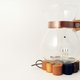 以皮绳贯穿天然原木为素材,功能可随着杯子与茶壶大小调整宽度
