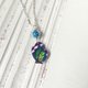 < 夜光紫色纹理蓝绿黄渐层手绘蝴蝶光亮玻璃球颈链>
