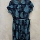 PdB 古着 热带蓝叶子印花 雪纺质腰绑带洋装