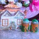手工的立体花卉藤蔓攀爬在茅草屋的四周