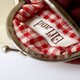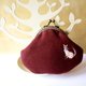 刺绣小猫绒布口金零钱包,暗红色绒布绣上白色可爱小猫,有红格图案内衬。全人手制作。