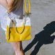皮革拼色纸袋包 - 手提/肩背 两用 (白+柠檬黄)