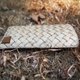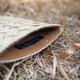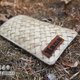 挺身和坚硬的椰子叶的编织布料,裁剪后需加功夫固定布料,内面缝上具保护性的棉质布料,贴心保护手机;并以「折骨」缝制好前后两面