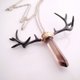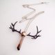 White bronze Stag horn pendant with smoky raw quartz stone and oxidized antique color