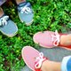 天然麻编绳边条以及别致车缝边,搭配跟孩童鞋款一样的鞋大底。