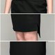我们试着将传统的西装裙做出更具设计感的变化,除了裙头的活片设计外,利用前后不对称长的细节,与前后片交错开叉设计,创造出有趣又有个性的细节,厚片的圆弧状设计让妳可以人前人后都能为之一亮;这是一件让妳可以从早到晚都能简约又有型的西装裙。