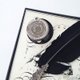 ◤意大利手写风羽毛沾水笔专用套组礼盒→ 精选羽毛锡制沾水笔,附古典锡制雕花墨水瓶,以及滚边高脚透明玻璃笔座,简约黑白色系俐落大方,礼组多样性高。
