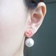 【简约少女】.手工玫瑰 X 棉花珍珠.抗过不绣钢耳针.耳钉{ 针式 / 夹式 }
