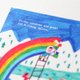 尺寸:9.9 cm X 14.5 cm 纸: 260 gsm, Modigliani, 意大利出品 包装:透明的塑胶袋 文字:Frozen rainbows are great for building igloos. 背面:空白 产地/制造方式 印刷地:香港