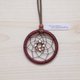 ▌作品故事 / 关于【捕梦网 】... 一个古老的传说,网子是密密牢牢捉住 噩梦; 美梦 筛过编织的捕梦网眼,轻盈落入梦乡。 ▌作品名称/ 好时光 ▌C o l o r / 咖啡 ▌作品尺寸/ 6*6cm ▌使用方式/ 可作项链,或悬挂吊饰品 ▌/注意事项/ 若商品为‘接单订制’,捕梦网所以独特,过程是完全的手制,重覆的绕绳和拉网,就算使用同样的毛绳和珠子,也无法完全复制出同样的第二个。也可能,作者在创作过程,偷偷点缀了一丝新的想法。 * 邮局寄件服务仅限每周六统一寄出。