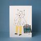 臭脸猫喜欢待在家,心情比公文包还沈重。 这张臭脸猫是我尝试用少少的纸胶带与简单线条绘制的明信片,是这一系列纸胶带手绘明信片的起点。 *原稿是用纸胶带与色铅笔绘制,再转印成明信片。明信片是平面图像,不是剪贴浮凸的纸胶带原稿噢! *明信片材质是采用手绘质感的象牙纸印制。