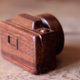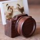 [森白] 的微型相机系列,为全手工木制品。 细腻的将相机的按钮、观景窗、镜头与机身处里的相当细致~ 全手工的坚持在于可依照每块木头不同的特性与纹理下去制作, 保留更多木头的质感与细节。 而一体成型的手工技巧,也让商品更坚固耐用! 可放置照片、名片、便条纸。 宽约6厘米,深约5厘米(含镜头),高约5厘米。