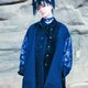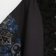 袖子的布料,蓝色透着金丝线的搭配,细致的反光,有着旧时代华服的风格,胸前黑色变形虫的布料衬托质感。