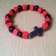 6×6mm染色木珠、6mm黑色糖果珠、8mm黑色糖果珠、黑色蚕丝线、松石十字架、仿银挡珠