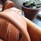 全手工制作,采用原色植物鞣制牛皮,坚固耐用,一般颜色为淡褐色,