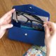 -需要收纳眼镜时,皮革片可扣住靠内的子母扣变成镜架,收纳物品时,可扣住靠外部的子母扣变成摊平状态,即可收纳物品。
