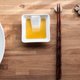 酱油蝶中仿洗衣板的阶梯设计,食物只要轻轻一刷便可以沥下过多的调味料,留下健康、可口的滋味。运用古代河边洗衣的情境,将进食成为一种文化的传承。筷子夹取食物轻轻一刷,入口的除了是食物的原味之外,也多了一分文化的滋味。