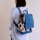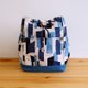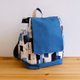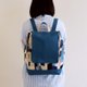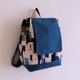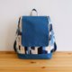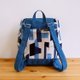 品名:手工车缝湛蓝色X几何蓝色方块图样绵布缀有牛皮后背包