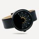 蓝宝石水晶表面, 其硬度仅次于钻石,完全防止表面磨损。再加上AR抗反射增透膜以减少光学元件表面的反射, 令表面更清晰通透。再配以哑光黑色涂层纯钢表壳, 真皮表带, 以顶级手功制作。