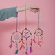 "商品说明及故事:这是印第安的古老传说,将捕梦网挂在床头边,网子会紧紧捉住所有即将入侵的恶梦,网子下面的羽毛则会将美好、甜蜜的梦吸引过来,100%纯手工制作成!!