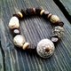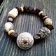 Muse 天然复古民族风木珠陶珠扣饰中性手链