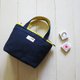 腊肠狗双色帆布托特包 - 小号 (海军蓝+鲜黄)